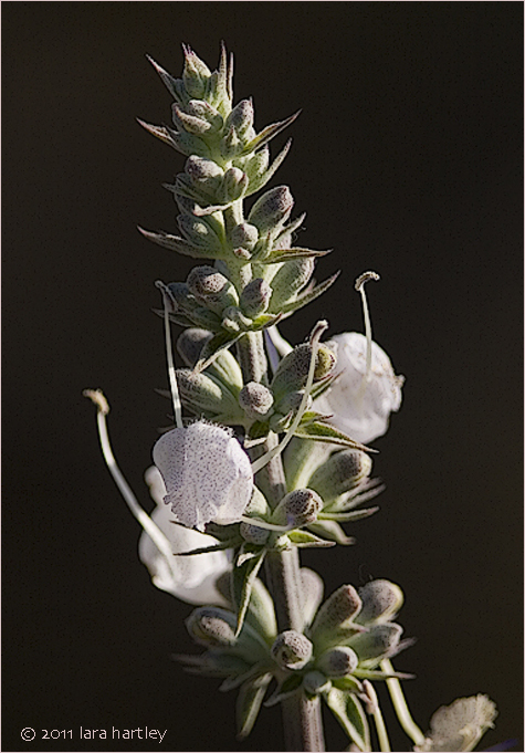 This evergreen perennial shrub is characterized by it’s broad, slightly fuzzy, very light green leaves. It is considered one of the most useful and sacred sages in California. The Chumash considered white sage to be their “everyday plant”; it was said that one should suck on a leaf or drink it in water everyday in order to strengthen your soul and to remain calm, peaceful and healthy. The dried leaves of the sage were bundled and burned, and the combination of prayer and sweet smoke was thought to protect, cleanse, and heal. Sucking on a leaf of white sage or drinking water with leaves in it is especially useful for sore throats. Other medicinal uses of white sage include relief of stomach aches, tooth aches, colds, flu, asthma, to promote menstruation, and to cleanse skin wounds and rashes. The Luiseno and Cahuilla used white sage as a shampoo and deodorant, making a shampoo by rubbing fresh leaves between the palms with water. It also is said that smoking white sage can induce sacred dreams and help people recovering from addiction, due to the calming effects of the smoke and the good spirits it is said to attract. (Reid, Sara; Wishingrad, Van; McCabe, Stephen Plant Uses: California; Native American Uses of California Plants- Ethnobotany University of Santa Cruz June 2009)