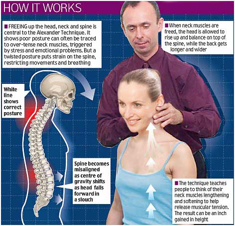 Having injured my back in an auto accident, I had never been able to sit at a desk for any length of time without discomfort. Now I began to notice that whenever I leaned forward to read or write I displaced my head downward and allowed my chest to collapse so that my torso was a dead weigh on my lower back. Since I had always done this, I assumed that there was no alternative except to make an effort to sit up straight. After experimenting with the technique I discovered that if I inhibited the preliminary displacement of my head I could move forward without becoming heavy and could work at my desk without discomfort.(p.11-12)