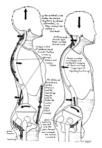 Unlike other methods of re-education, his was designed to correct both mental attitude and the physical condition at the same time by combining “directive orders” on the part of the pupil (to change the mental attitude) with skillful manipulation on the part of the teacher (to change the physical condition). The directive orders activated the ideomotor centers in the brain without initiating movement… The pupil was instructed to give his attention exclusively to the orders (the means-whereby) and not to concentrate on the end or goal to be reached. The teacher would then bring the pupil into a “position of mechanical advantage” in which the back was widened and the spine more extended. In such a position breathing would be facilitated and stiffening of the neck and arms and other postural faults would be reduced. (p.21)