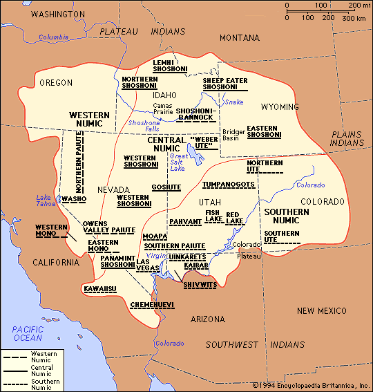 The Ute and Southern Paiute thought that all animals were controlled by a snow-white Master of the Animals, who lived high in the mountains, walked around in cloudy weather, and was able to transform into a raven (Hultkrantz 1986). A central ceremonial pole, originally a deciduous tree, was represented as a metaphor for death and rebirth. The tree goes through a process of “dying” (shedding its leaves and going into a relatively dormant state in winter) and then is reborn anew in the spring. The pole is a means of travel, a road for the Master of the Animals, helping to provide a safe return, means of reincarnation, and an aid for leading game animals back from the underworld to the tribal hunting grounds in the spring (Hultkrantz 1987a, 1987b; McNeil 2005, 2008).