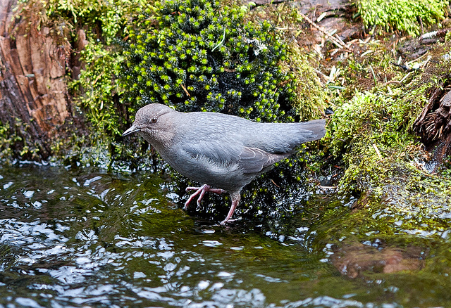 And he thought, “Let me grab the littlest one.” He reached out, but the child turned into a bear-lily. He thought, “I’m grabbing the other one.” It turned into a hazel-bush. He grabbed his wife: she turned into a pine tree. He, in turn, swooped down there. You will see him like that now. He eats mud on the edge of creeks. [He became a water-ouzel, a small, grey bird called “Moss-eater” by the Karok.] But his wife and his children, when there is a deerskin dance, are lined up [as baskets] in front of rich people.